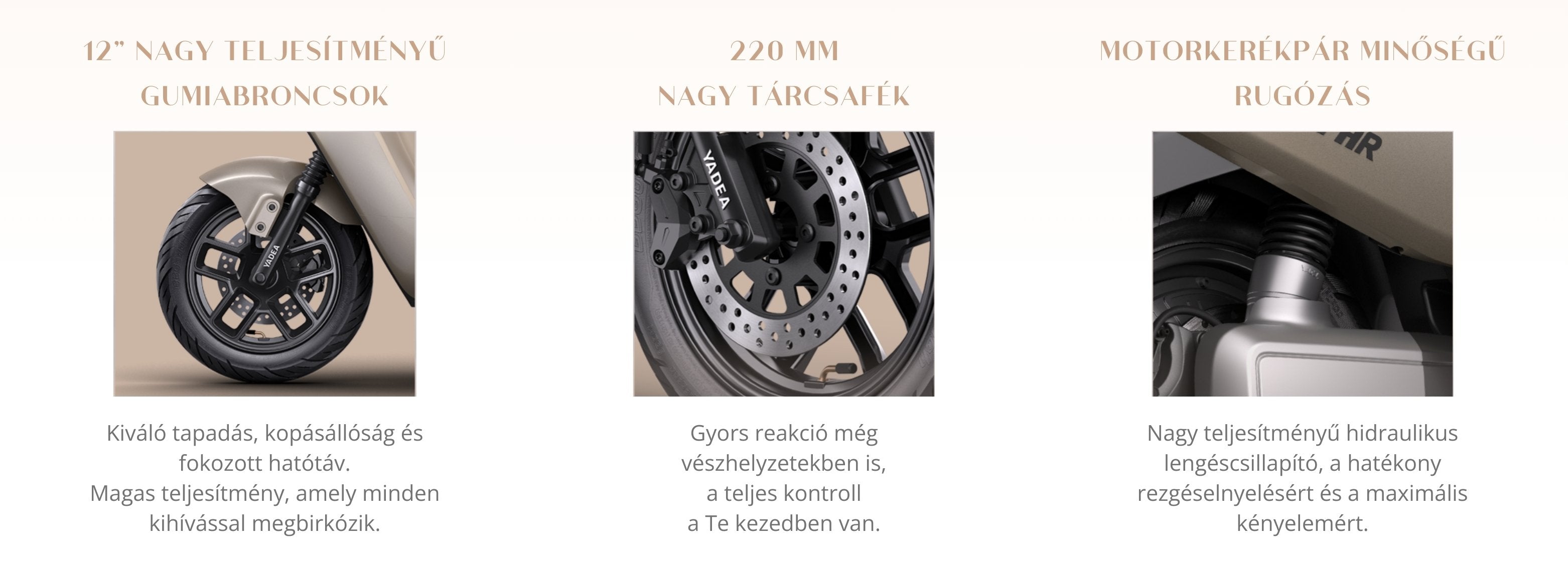 A teljes LED világítási rendszer nemcsak biztonságosabbá teszi az utazást, hanem elegáns dizájnelemként is kiemelkedik, erőteljes fényt nyújtva minimális energiafelhasználás mellett. A modern digitális kijelző és az intelligens vezérlőrendszer intuitív kezelhetőséget kínál, míg a kényelmes ülés és letisztult megjelenés valódi prémium élményt nyújt.