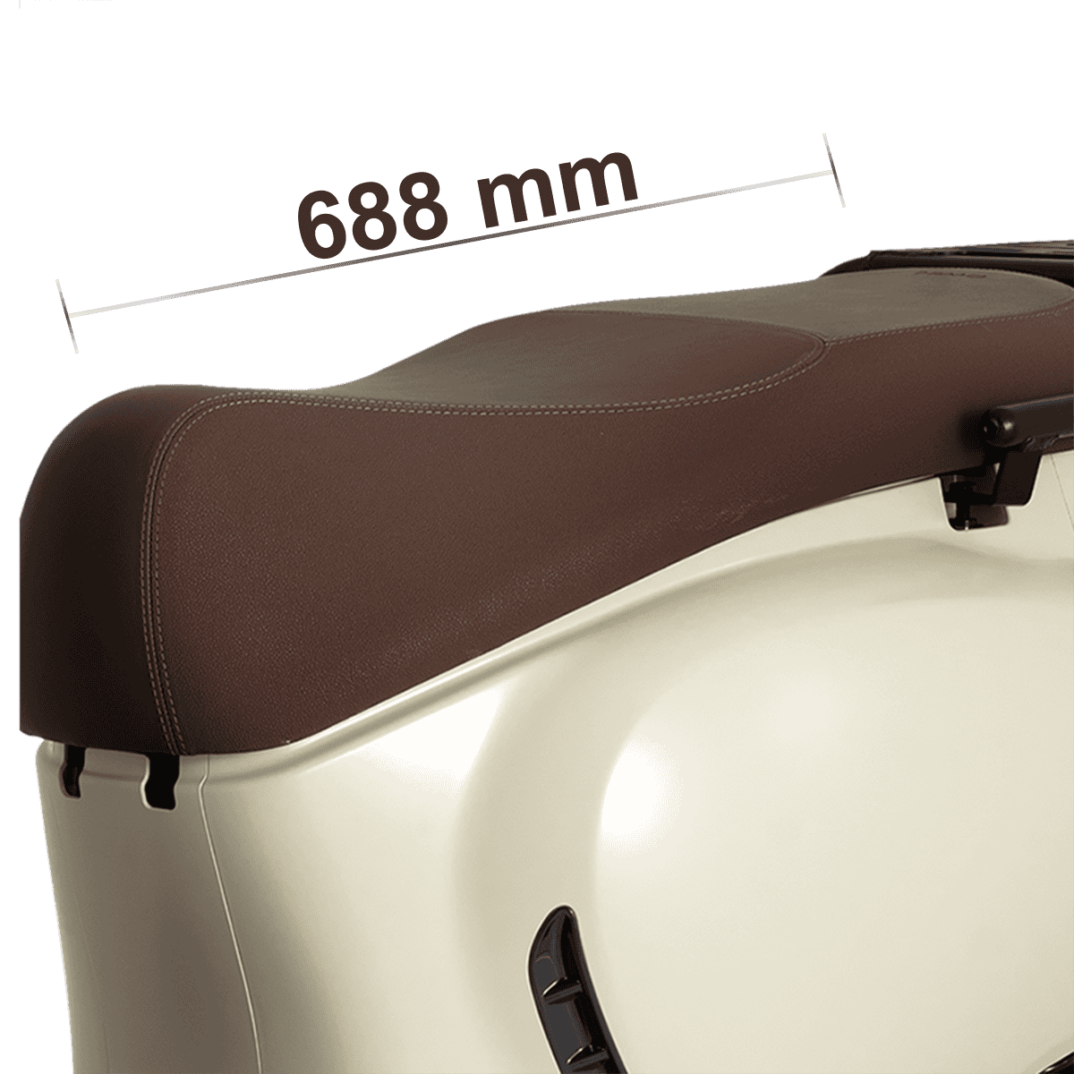 A 688 mm hosszú ülés bőséges helyet biztosít a kényelmes vezetéshez és az ergonomikus testtartáshoz.