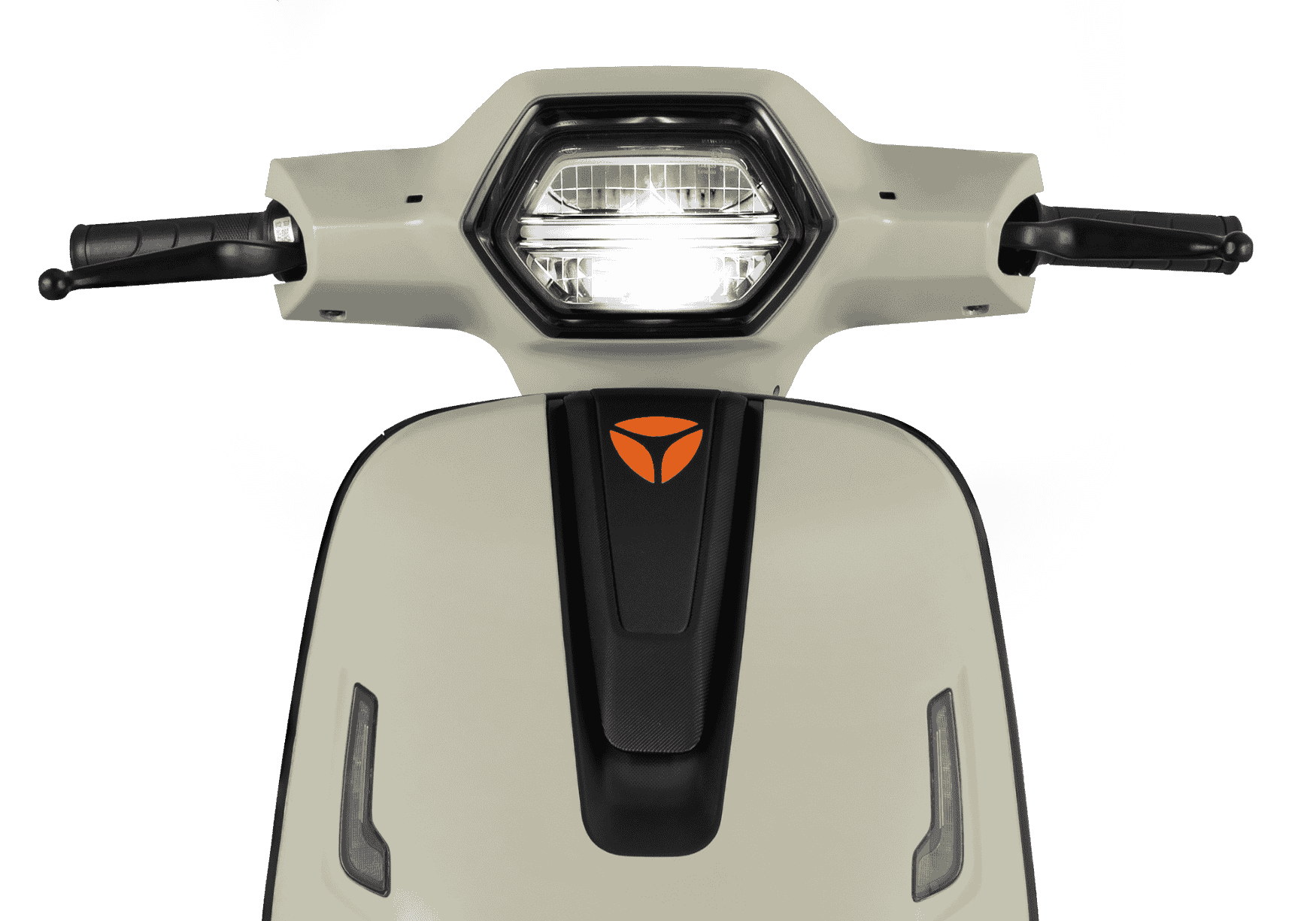 A jellegzetes, hatszögletű, gyémánt formájú LED fényszórója elegáns megjelenést kölcsönöz a robogónak, miközben erőteljes és egyenletes fényt biztosít.